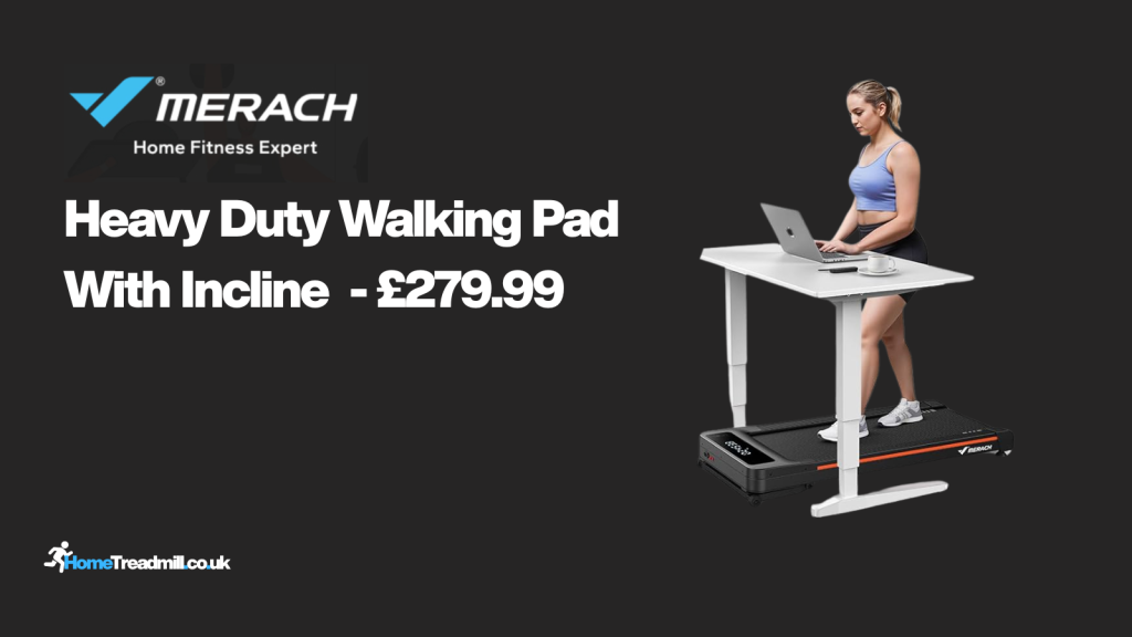 Heavy-Duty Walking Pads (£279–£369) — Merach’s heavy-duty walking pad range, including the T25 and the NovaWalk W50 series. These are not standard walking pads — they are built for heavier users (up to 181 kg / 400 lb on the top model), feature auto incline up to 12%, wider belts, reinforced decks, and marathon-length runtime. Merach positions the W50 models as “TrekPads” that bridge the gap between walking pads and full treadmills. Nothing else in the UK market offers this combination of weight capacity and incline at this price.