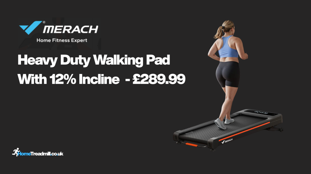 | Merach Heavy Duty W50 | Heavy-duty walking pad · 3.7 mph · 12% auto · 181 kg | £289.99 |