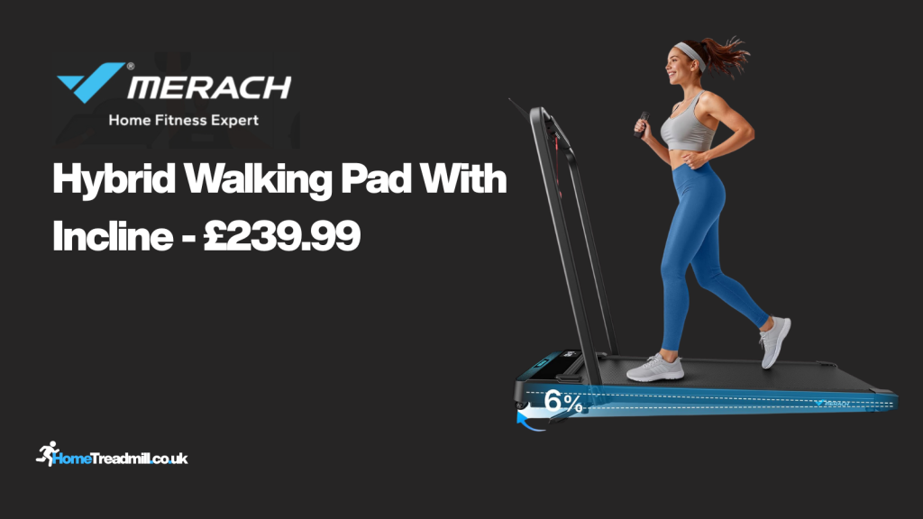Merach is the budget brand that has earned a place in the UK walking pad conversation. Founded in 2018 and now one of Asia’s largest home fitness equipment companies, Merach has quietly built a UK range of walking pads and treadmills that prioritises affordability and feature density, most notably powered auto incline from just £109.99.