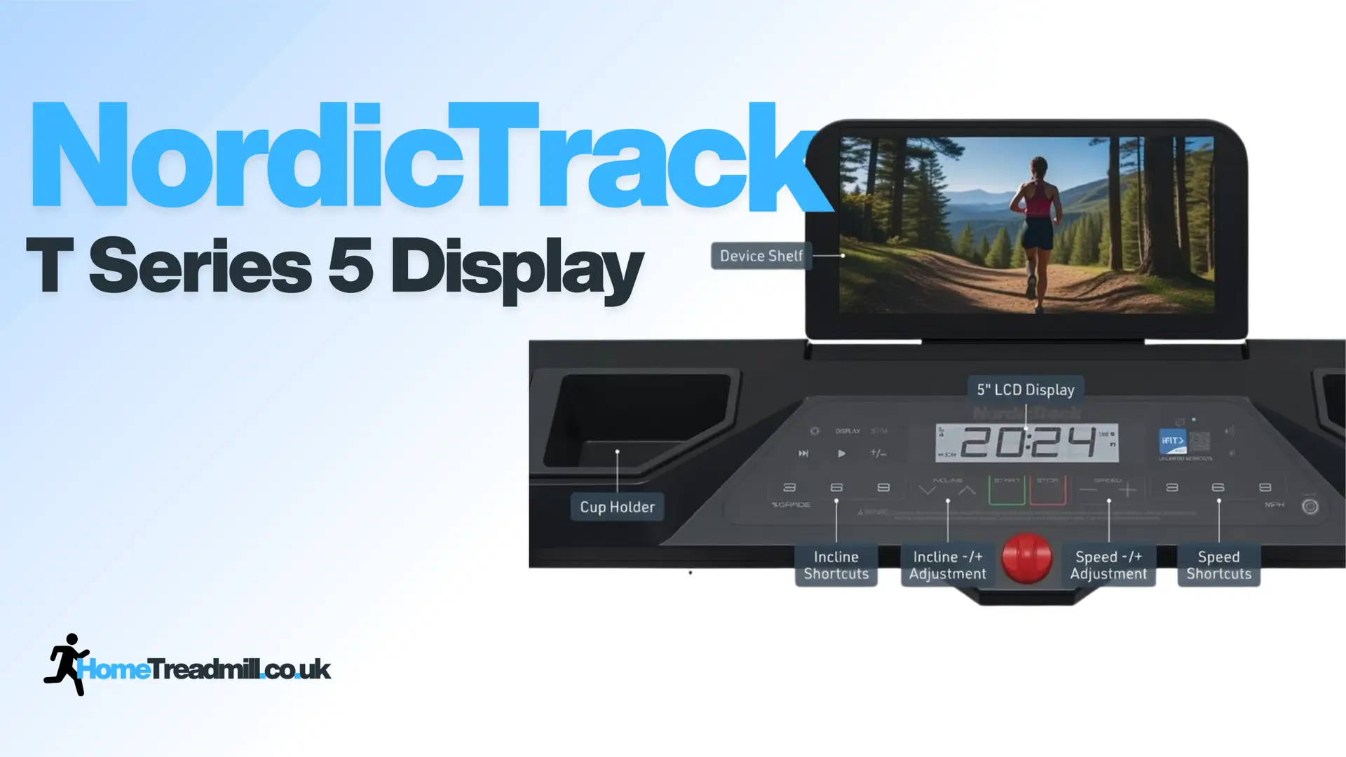 The 5 inch LCD tracks your workout data, and there is a device shelf above it for propping up your tablet or phone. Pair it with iFIT and the treadmill adjusts speed and incline automatically during trainer-led sessions. Skip the subscription and you still get 10 built-in programmes and full manual control.